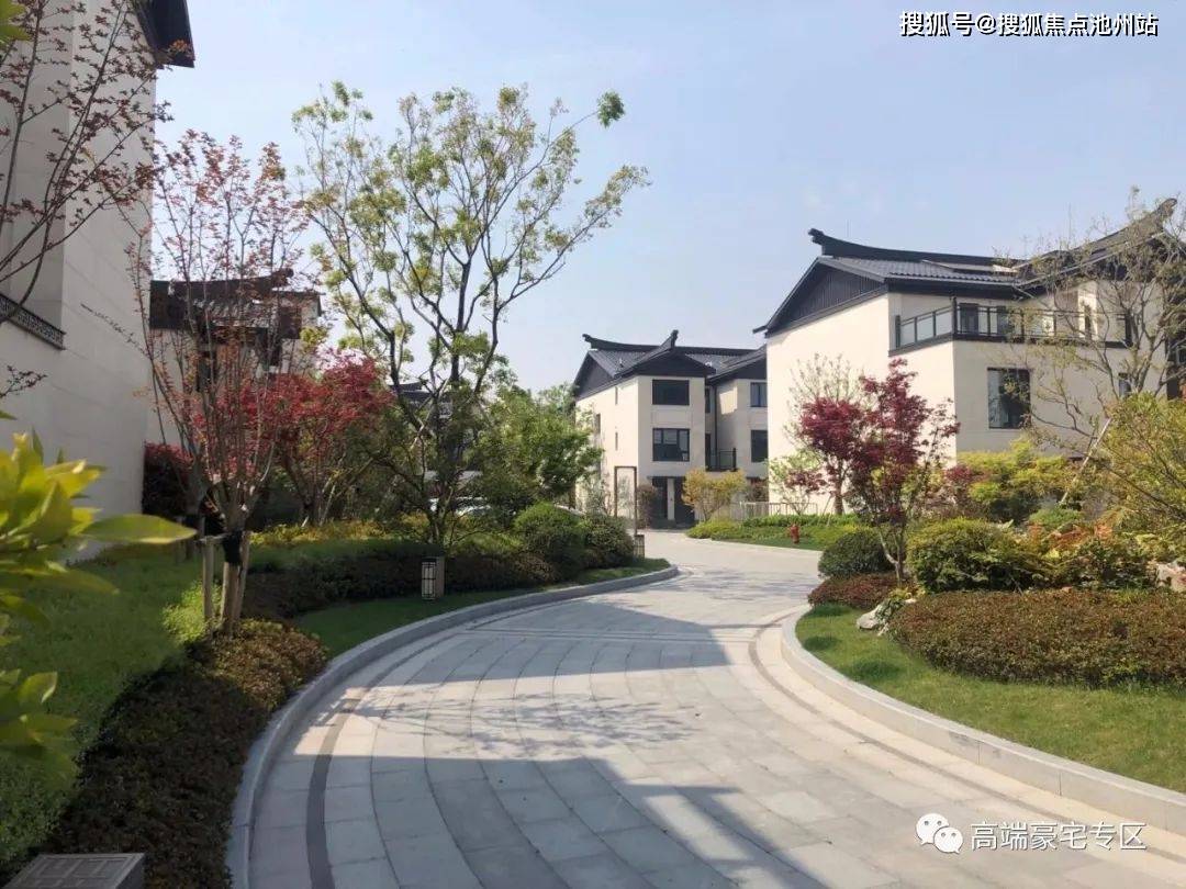 白墙黑瓦的视觉风格,中轴对称的大气格局,高地错落建筑造型,辅以亭台、叠水、乔木等中式景观布局,营造浓厚的中式宅院体验感。