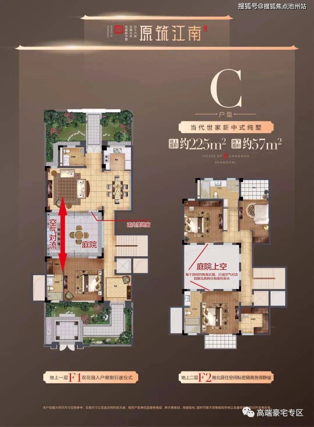 项目采用中式院落式布局设计,每家都能够享受私人庭院,以最小面积225平为例,在户型的中间部分,有一处围合式庭院,位于客厅、卧室的中间处,自家人的院落私密性极好。