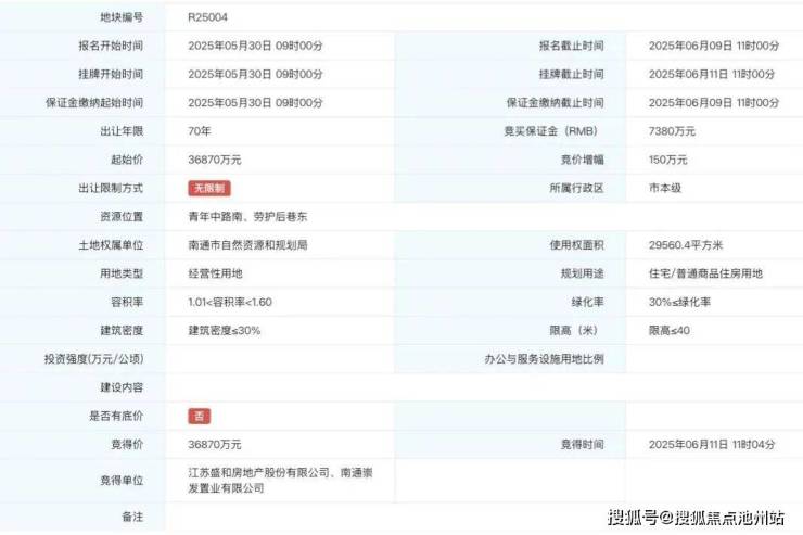 2025年6月11日,江苏盛和房产、南通崇发置业联合拿下主城青年路沿线 R25004地块。