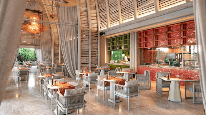 度假村八间餐厅和酒廊提供独特的环境,从漂浮的水上早餐,到日落时分的鸡尾酒,让宾客在世界各地的美味中开启和结束每一天。餐厅有低调的沙滩小屋Beach Shack,可将脚埋入沙子的同时享用各式披萨和烧烤海鲜;设有开放式厨房的Habitat,全天提供东西方与意大利风味美食;水上餐厅Origin,通过可持续的采购、存放和减排,呈现海鲜的最佳状态。