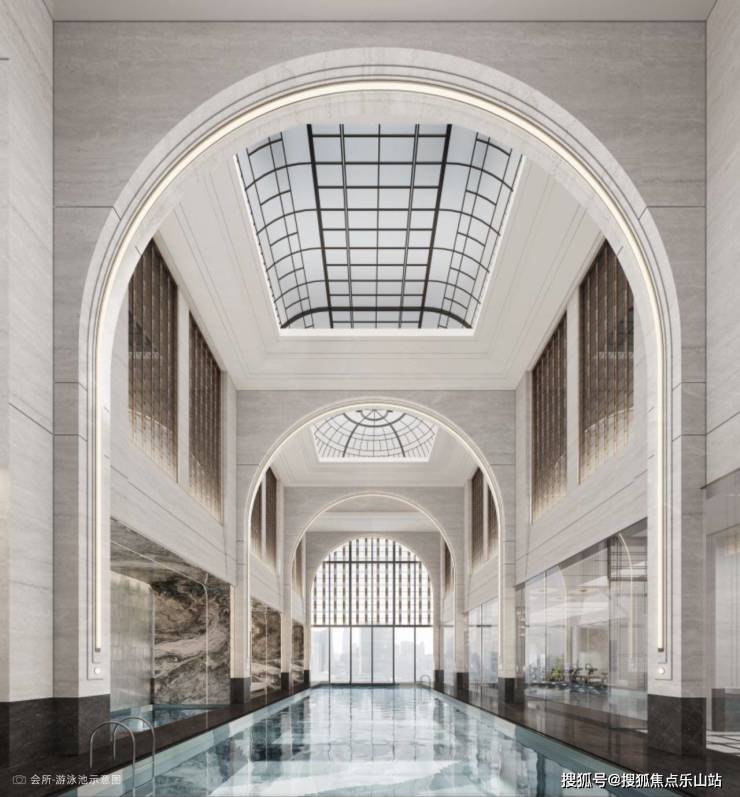 项目复刻其经典装饰主义,约10m挑高大堂,挑空拱门架构的恒温泳池、孔雀廊般的艺术展廊,层叠线条,艺术家真品装置等,让峯层生活从此同频华尔道夫