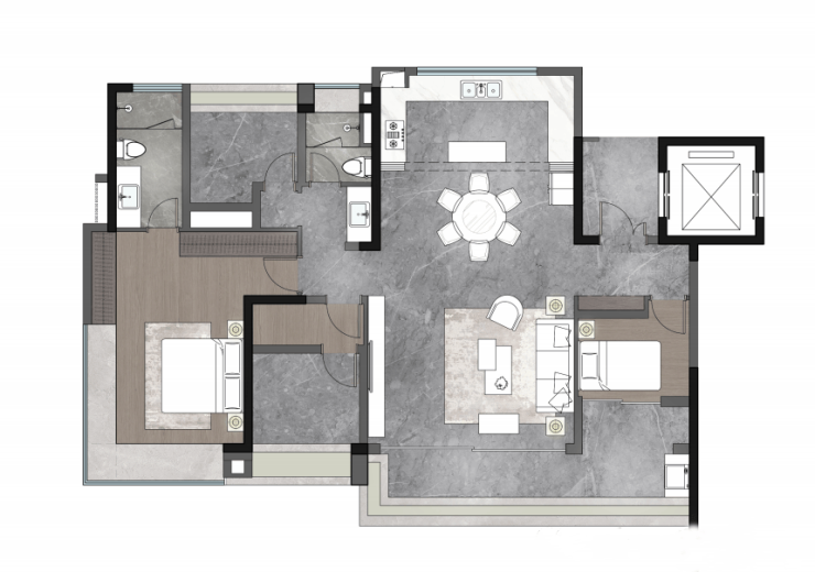「港式户型」对标香港豪宅设计手法,空间布局注重业主自我及家人居住舒适性。