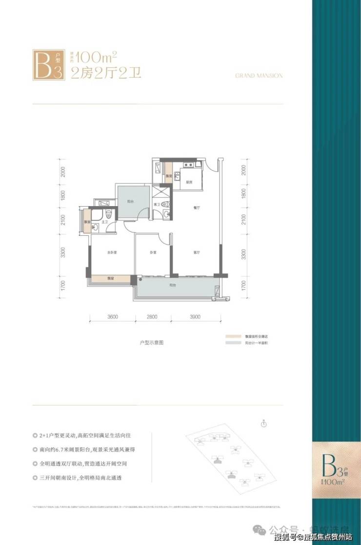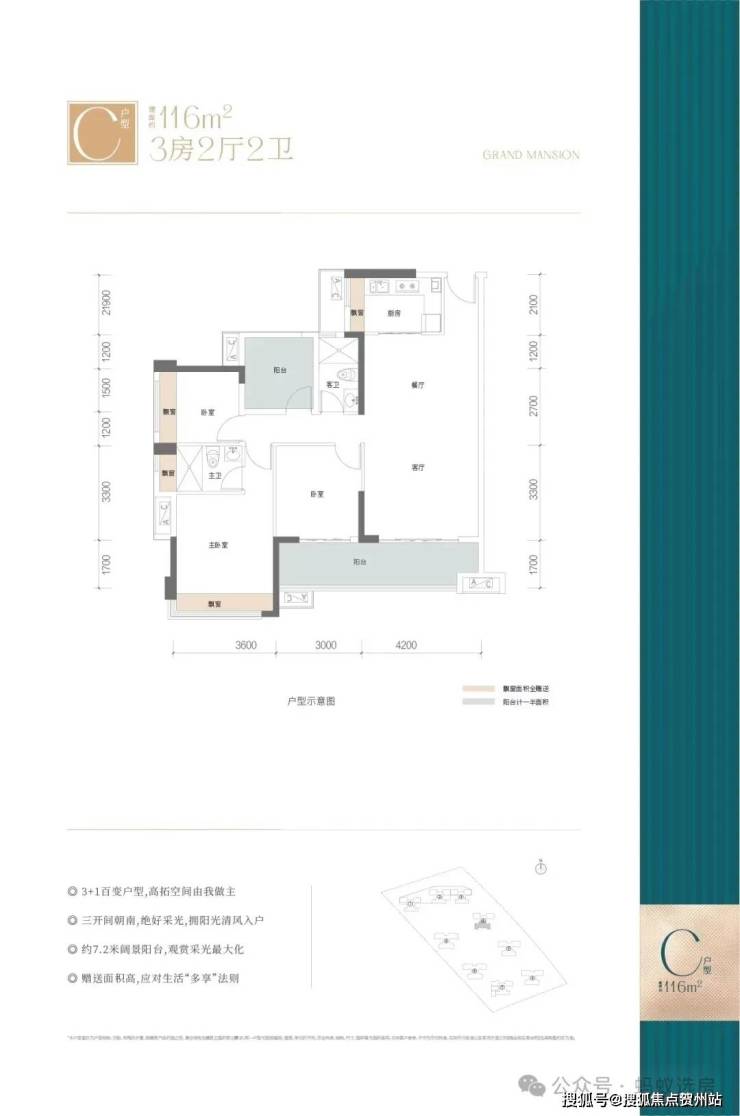更阔绰的居住尺度:户型设计有较高的得房率,主推建筑面积约88-117㎡的户型。其中,建筑面积约88㎡的户型,厨房飘窗、主卫飘窗、主卧大飘窗全赠送,开间约6.3米的大阳台及一个次卧送一半面积;建筑面积约117㎡的户型,能采光装玻璃的位置都送,使用率接近100%,是“会成长的户型”,具有灵活的延展性,可根据业主不同人生阶段需求而变化。