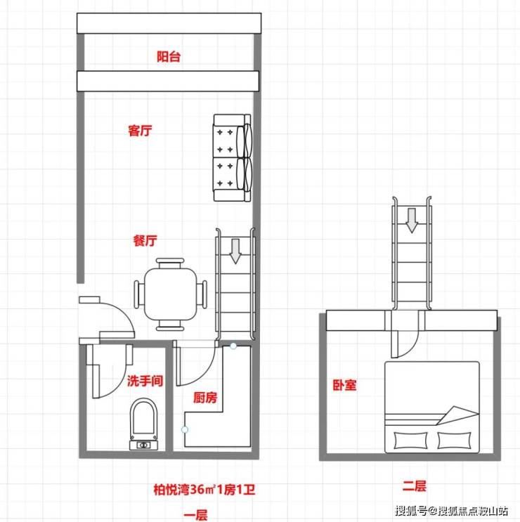 36㎡1房2庁1卫户型图