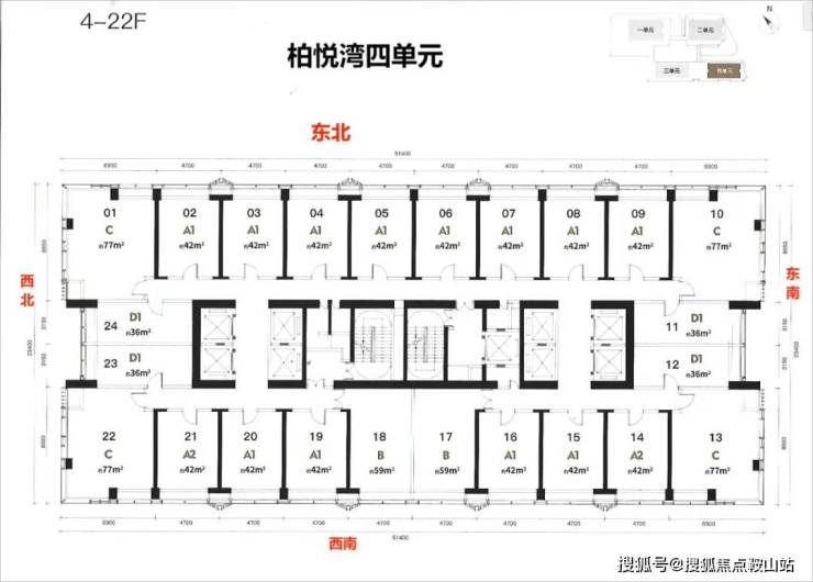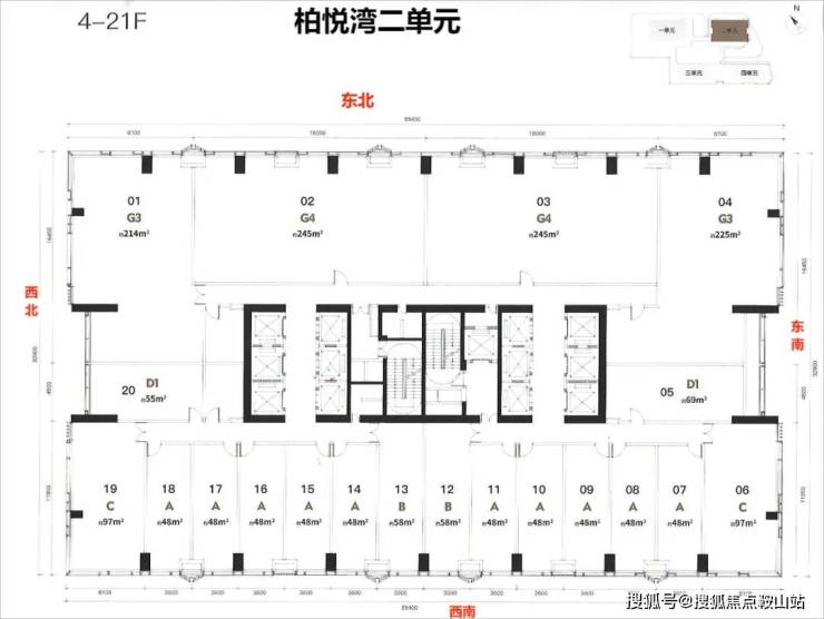梯户比:公寓5梯24户 商办6梯20户