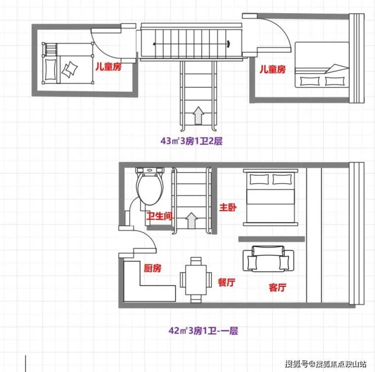 42㎡3房1卫户型图