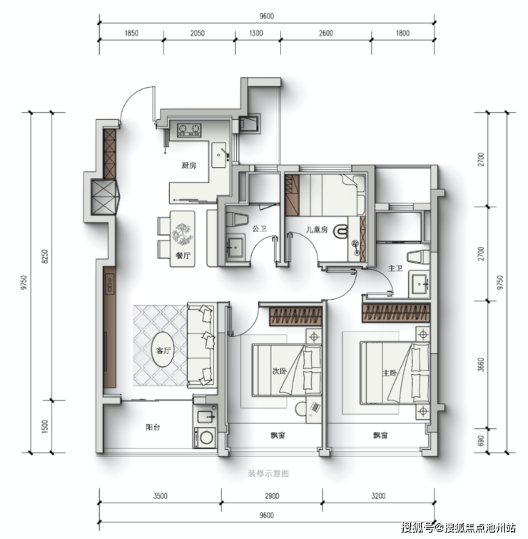 是的,户型正在越做越大。所以当看到下面这个建面约112方的四房时,内心是有一点感动的:又有楼盘认真抠起了户型。