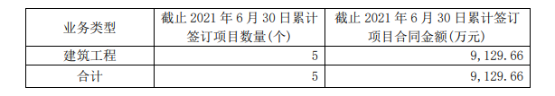 截止2021年6月30日,公司建筑施工业务无已签订尚未执行的重大项目。