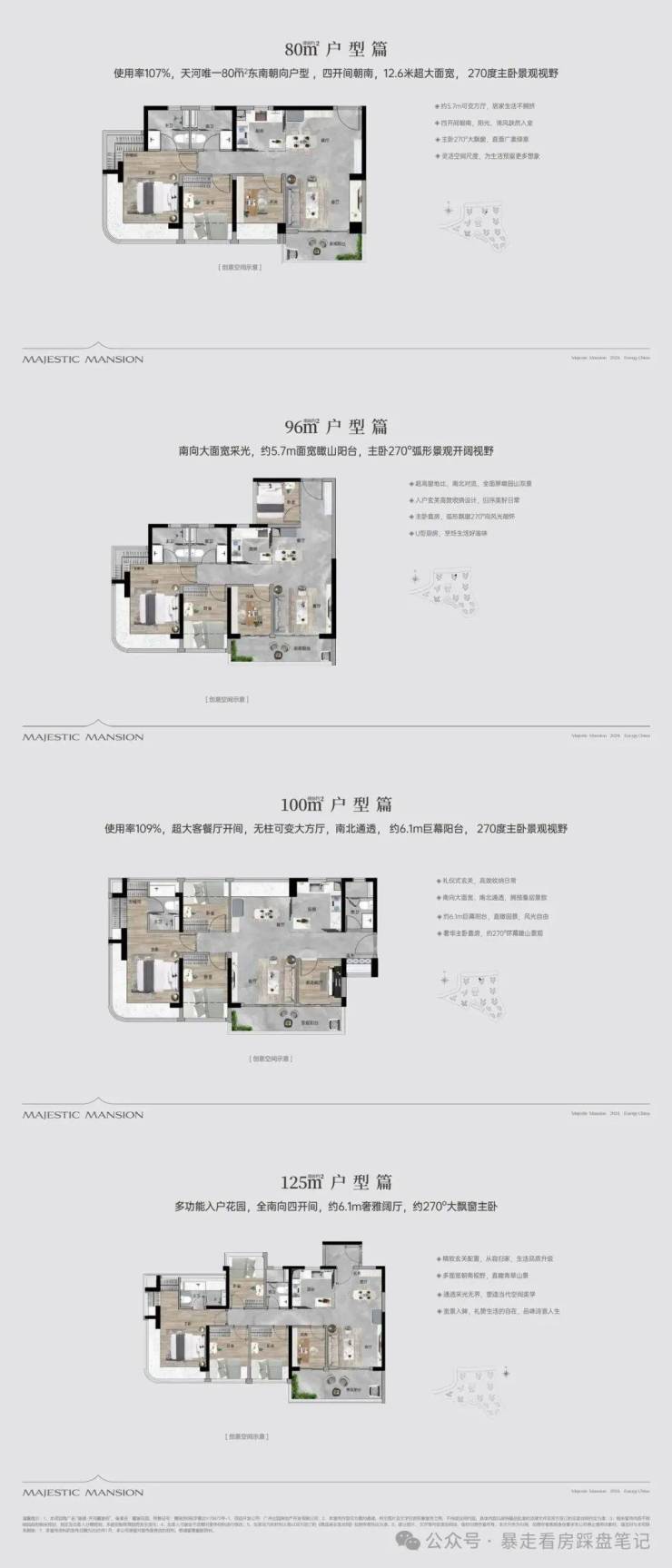 建面约80-125㎡可生长空间、270°全南向瞰山奢居、超100%高空间使用率