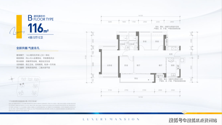 经典竖厅格局,次卧一和客厅连接约6米超长阳台;03/04户型东南朝向,01/02户型西南朝向。