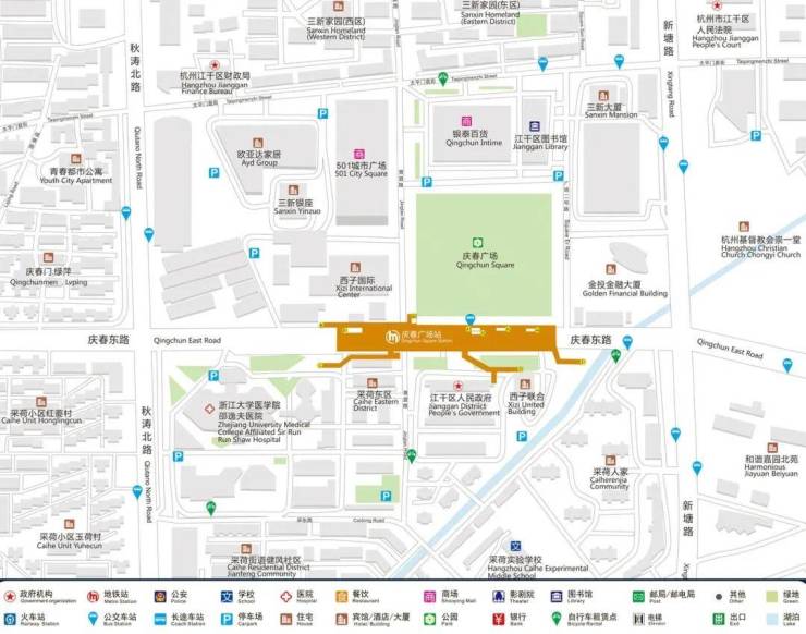 北侧直达庆春银泰,互相连通,形成完整的庆春商业中心,共享人流