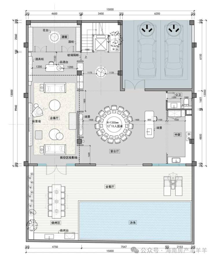 D户型建筑面积:约135㎡,4房4厅6卫+2保姆房+2车位+1庭院泳池,使用面积600m²-630㎡