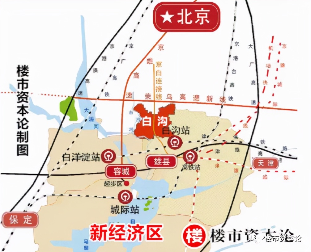 白沟15公里范围内分布有四座高铁站,白沟站,白洋淀站,雄安站,雄安城际站(在建),楼市资本论称之为“全球最密高铁区”。