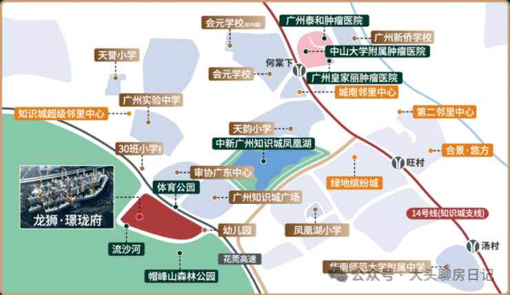 项目位于凤凰湖与九龙湖两核心板块交汇的中心区,凤凰湖片区汇集知识城广场(建设中)、知识大厦等相关产业中心已经落成。