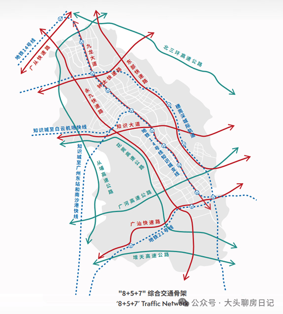 永九快速路、九佛快速路、智慧大道、知识大道、广汕快速路、广从快速路、知识城至生物岛快速路