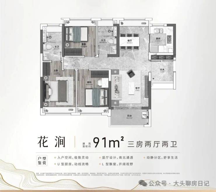 🤗 超高性价比,91㎡爆款三房,舒适三房,对流设计,动静分明,实用率高