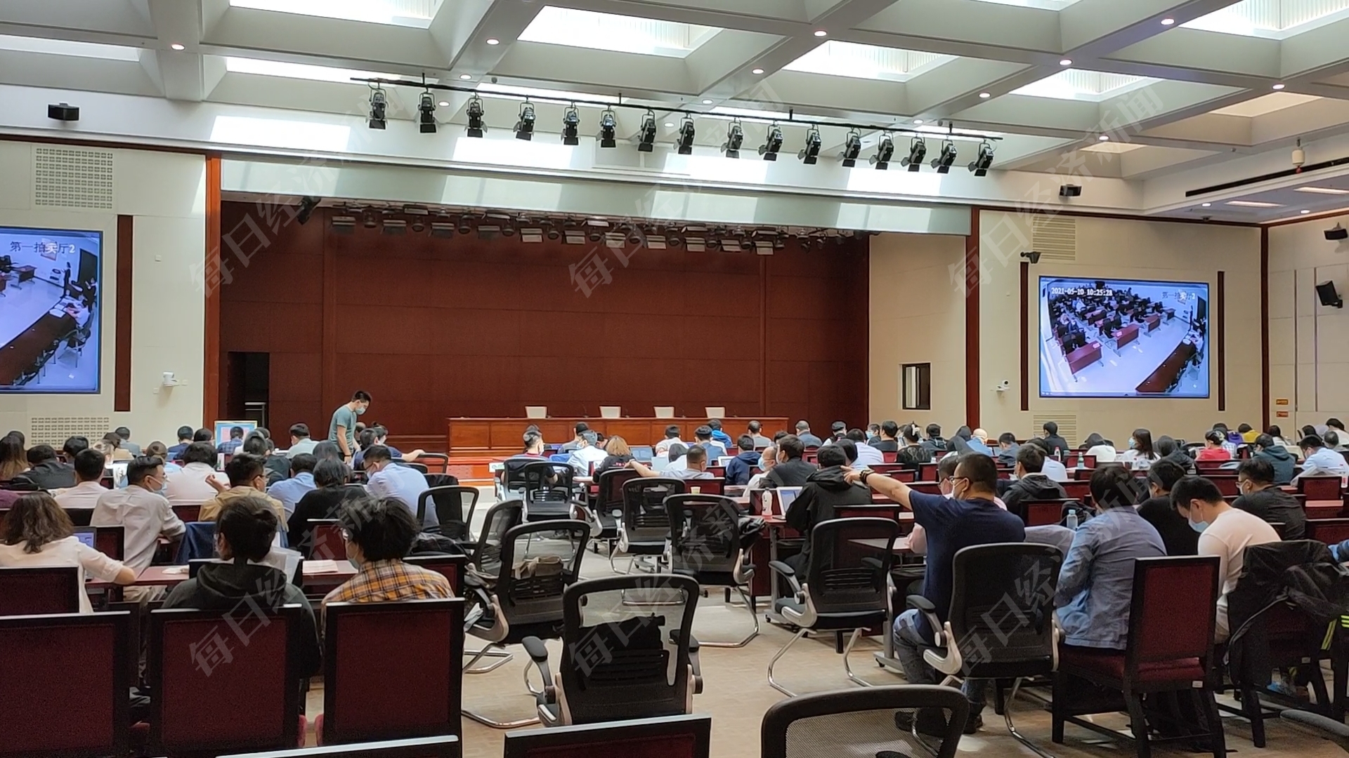 人头攒动的转播室 每经记者 王佳飞 摄