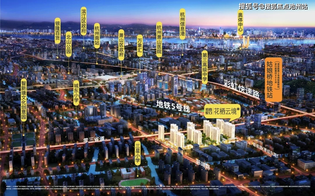 交通配套:5号线姑娘桥站约800米、杭绍轻轨(规划)等;