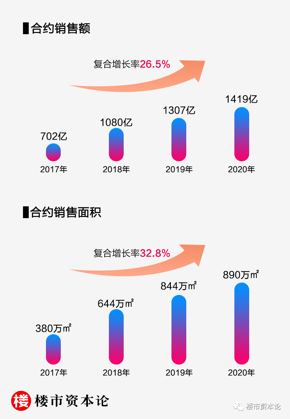 楼市资本论注意到,若将时间轴拉长来看,相比2017年的701.53亿元销售额,正荣地产在四年间累计涨幅高达102.3%,年均复合增长率为26.5%;