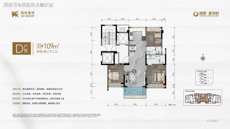 D户型:约109㎡ 舒居3房2厅2卫