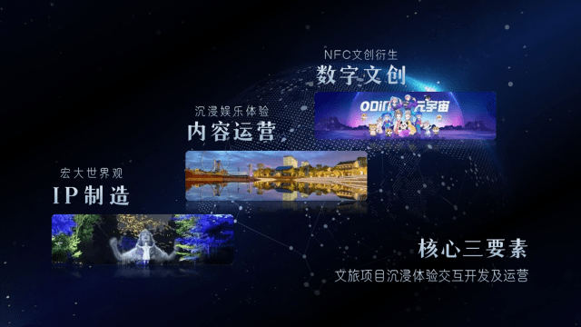 在我们的数字文创及IP内容运营的解决方案中,我们将IP、数字文创、内容运营三个重要元素作为核心,深入的应用于农文旅综合体。目标就是让用户感受不同场景和秩序中的快感。
