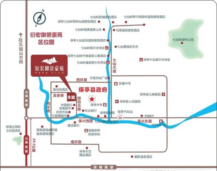 位置:(三亚后花园)海南省保亭县市中心团结北路与龙泉巷交汇处(市中心)