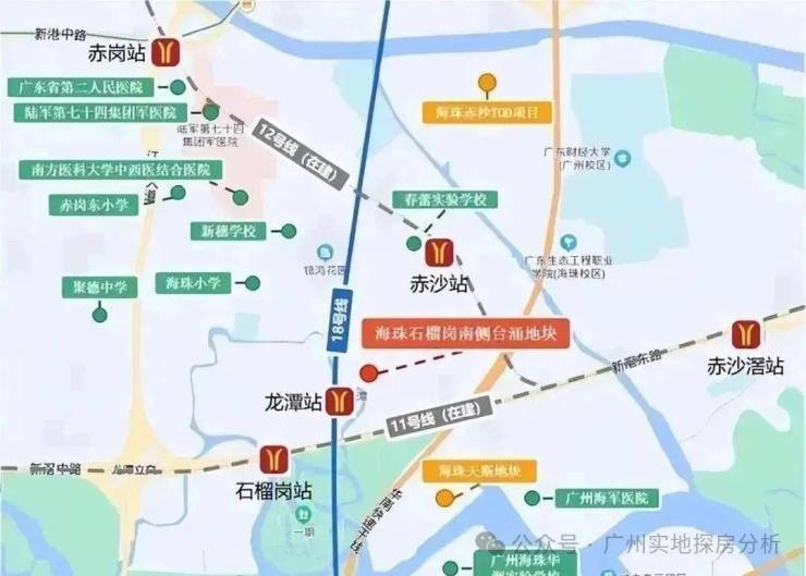 项目距离地铁18号线和在建11号线交汇的龙潭站约600米,从龙潭站出发,到珠江新城、琶洲金融城很近。