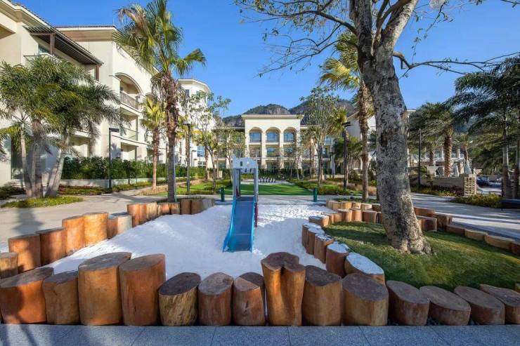 充分的人行步道和硬质铺装,为停留和休憩提供了舒适的场地;儿童游乐区,缤纷植被和充满活力的空间设计,专为自由撒欢预备;主泳池区,则以静谧、平衡为主调,将焦点让渡给自然景致。