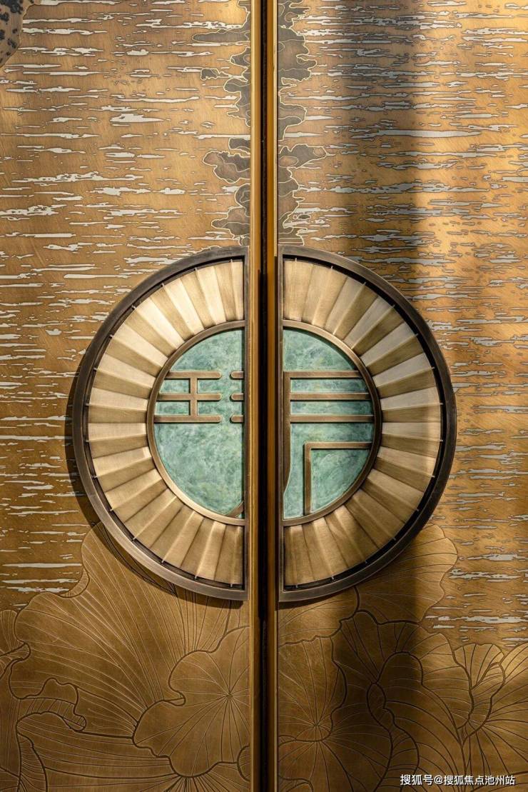门庭正中,巍然矗立着一扇高约9.6米的巍峨铜门。其形制以钱塘潮汐为灵感铸就,气韵磅礴。此非凡巨制,由熔铜艺术宗师朱炳仁先生特别定制,令归家伊始,即成一场艺术巡礼。