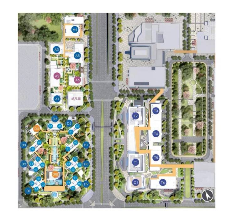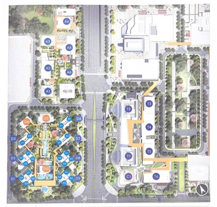 住宅部分是由(D1~D9)9栋25层~35层的洋房大平层以围合式布局组成。