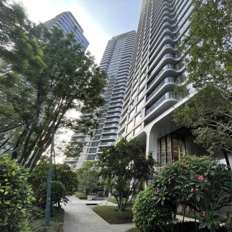 产品方面:目前在售D1~D9栋,总层数25-35层的140~270㎡四房为主,以及A1~A6栋面积108~277㎡的住宅式公寓,产品基本上属于塔尖顶级豪宅,低梯户比、低密度的改善型大平层(改善型)。