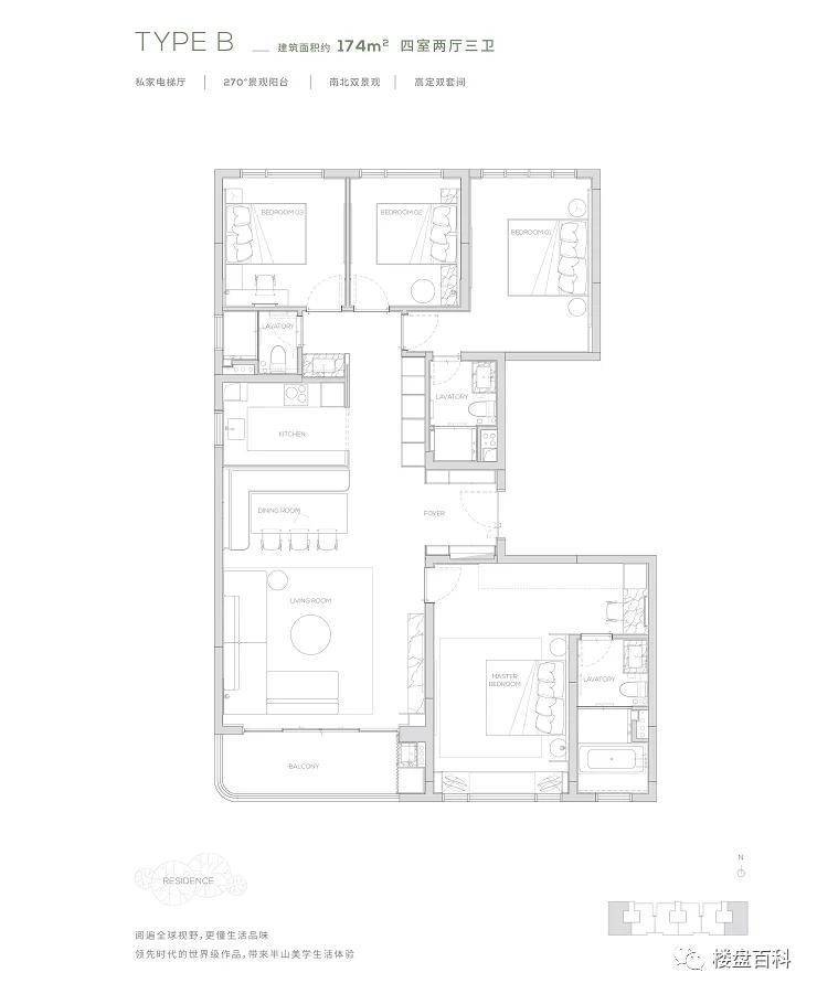 约37万㎡全龄社区,产品涵盖145-315㎡三至五房,私家电梯厅,专梯专户。