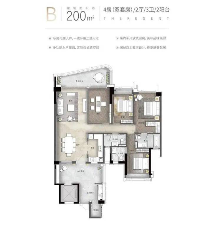 从建筑立面到产品设计均邀请全球知名顶尖设计大师倾力打造,室内设计由世纪华人奢豪宅邸大师——梁志天亲自操刀,历经3年推敲和打磨最终得以呈现最极致的作品,以专属客群定制设计理念,打造真正的划时代江景豪宅