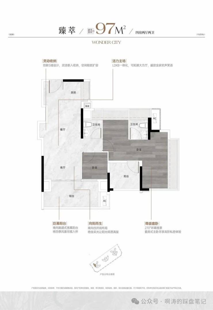 ★真跃级:约4.2m开间主套,独立衣帽间+270°揽景+三分离卫浴;