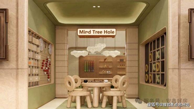 项目规划约2000㎡大型全龄儿童乐园,以原木、沙地、水波、草坪等自然元素营造,让孩子能在自然中探索,尽情的快乐成长。