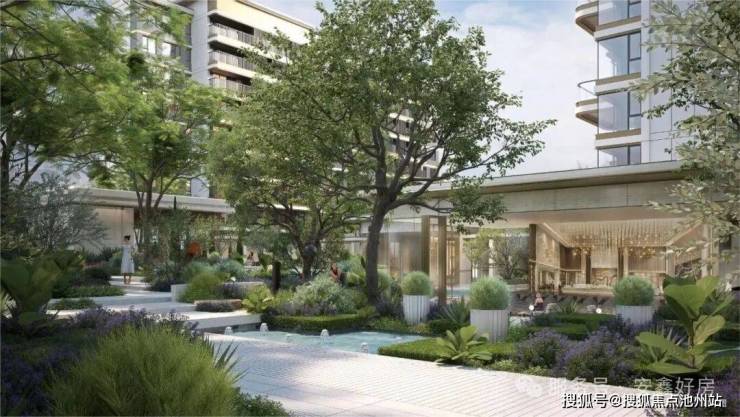 商业情景街区与自然景观无缝衔接,酒店式环岛归家入口。