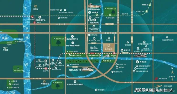 伯渎河景观带、伯渎河体育中心(规划)、泰伯体育公园、新城中央公园等