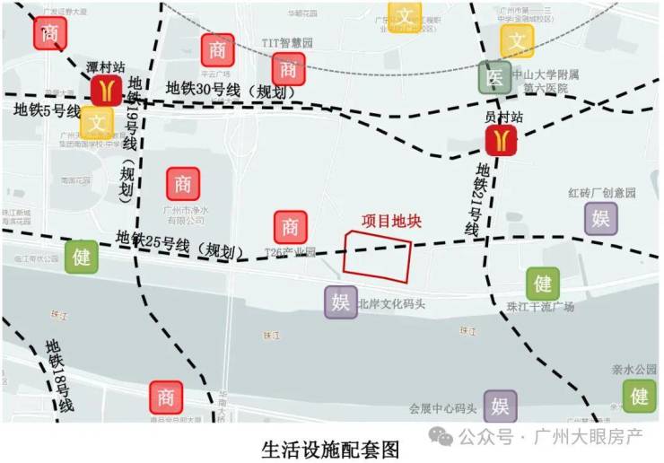 天河CBD,位于临江大道旁,与珠城直线距离仅约600m,隔着净水厂,就是广州豪宅标杆汇悦台,二手成交单价一度超30万/平。而隔江对望又是琶洲,正对着广交会展馆,是外商们的掘金之地+南向望江+130%使用率+容积率3.7+自带商业——buff值全部拉满,从产品属性看来,这也是一个前所未有的新一代产品
