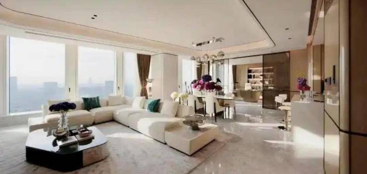 奢华精装配置:装修标准达1.8万元/㎡,选用V-ZUG等高端家电品牌,室内设计融合超跑元素(如无框车门式落地窗、楔形空间布局),公区墙面地面采用进口石材铺装1。