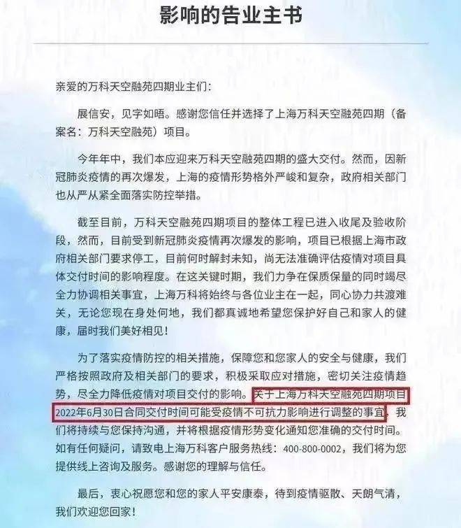 不幸中的万幸是,开发商的应对态度十分积极。万科为配合防疫工作,排名前列时间发出了开诚布公的告示,对于项目工期进度进行充分解释,以求得准业主们的理解与支持。