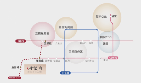 1号线支线、14号线黄金双轨发展格局,使河西地区连通丽泽金融商务区、丰台科技园、金融街、国贸CBD、望京CBD等核心发展区域,延伸河西生活半径,助力区域科技产业、高端人才聚集,成为发展新高地。