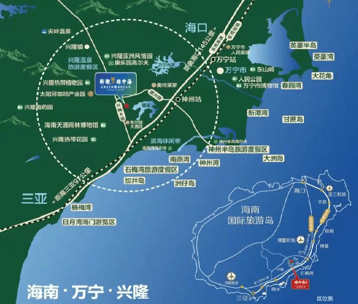 恰处兴隆国际旅游度假区、神州半岛国际旅游度假区、石梅湾国际旅游度假区三大度假核心区的中心位置