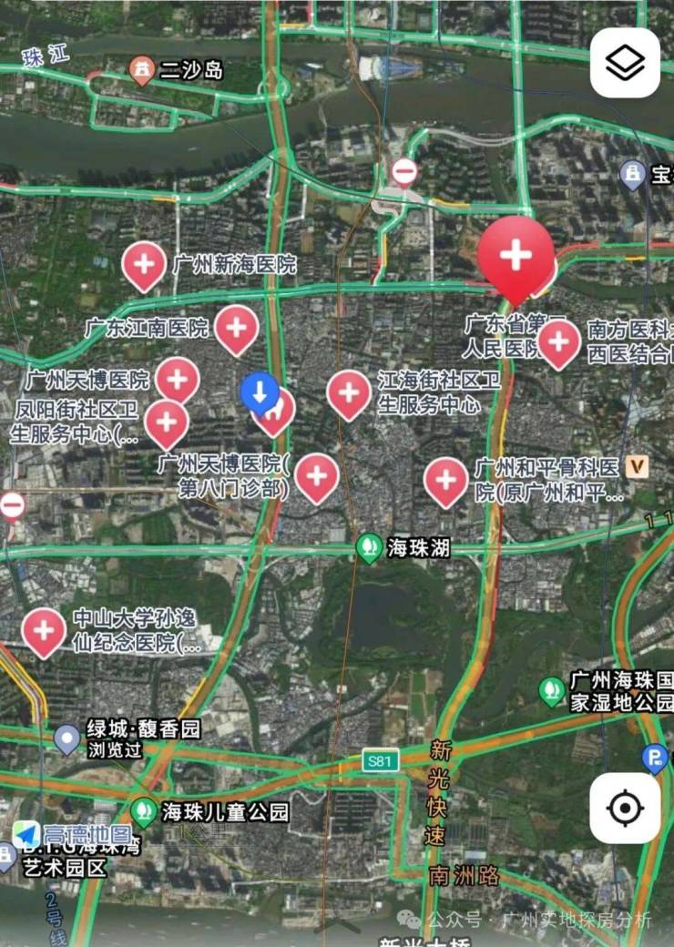 距离项目2公里左右有广东省第二人民医院,南方医院等,周边还有广州市海珠区人民医院、广州市海珠区中心医院、广州市海珠区妇幼保健院广州市海珠区中医院广东省人民医院、中山大学附属第一医院、华南理工大学附属第一医院。