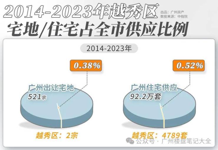 越秀区,广府千年不变的行政、商贸、金融及文化中心。去年,越秀区GDP达3650.18亿元,以全市0.5%土地贡献了12.7%GDP,经济密度全省第一,无愧广州都心。过去10年广州共出让521宗宅地,越秀只占比0.3%,难有新筑。