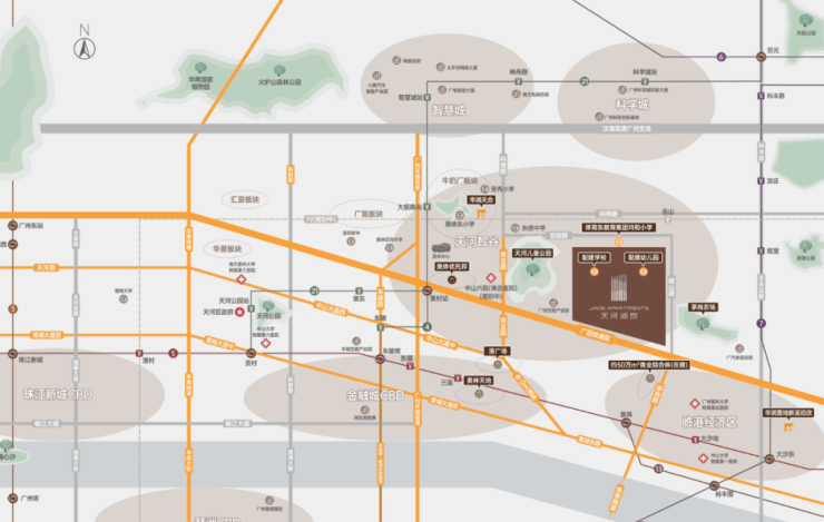 目前项目所在的板块内,有且仅有体育东教育集团均禾小学、执信中学(天河校区)。尚且不说均禾小学能否承载珠花本身的教育需求,天河执信学位在去年就已爆满,需摇号入读。