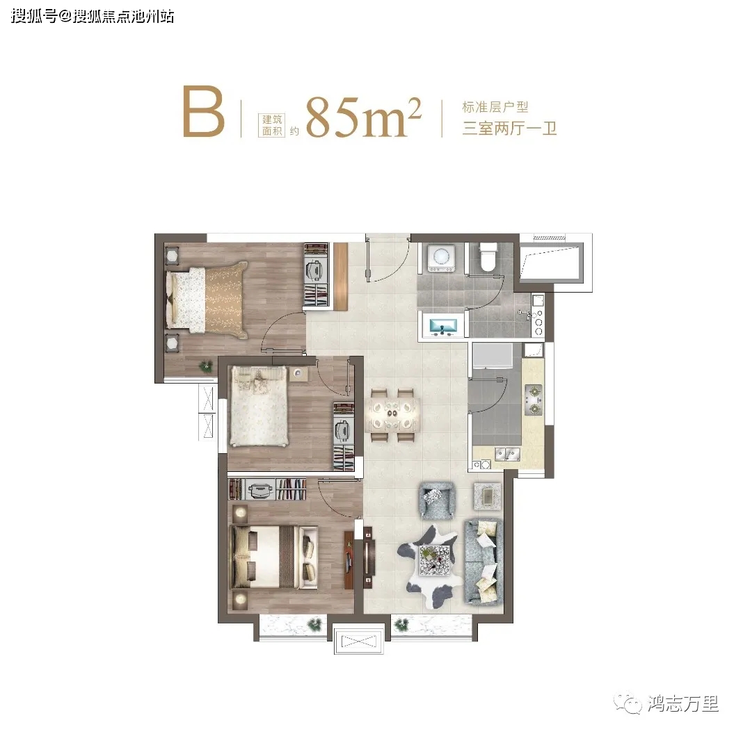 89㎡南北通透三居