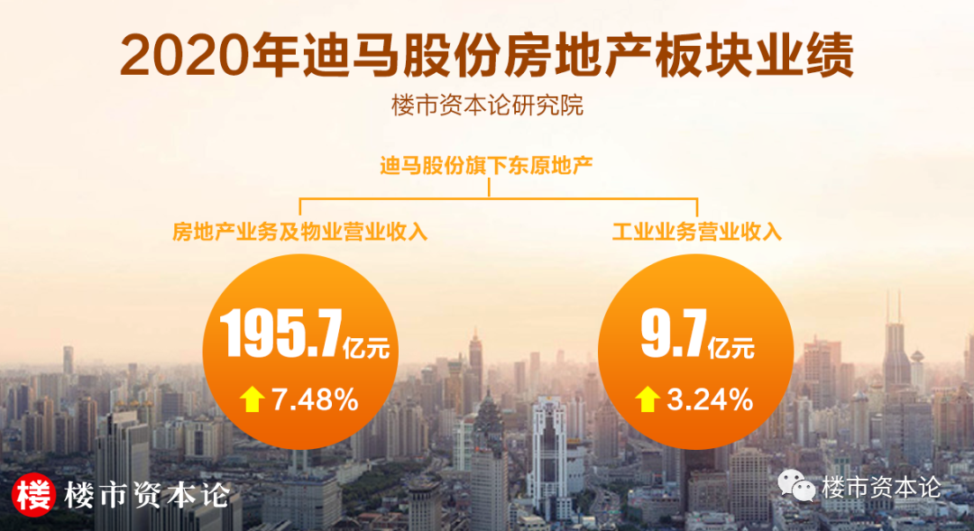 财报数据显示,迪马股份旗下东原地产房地产业务及物业实现营业收入约195.7亿元,同比增长7.48%;工业业务实现营业收入约为9.7亿元,同比增长3.24%。