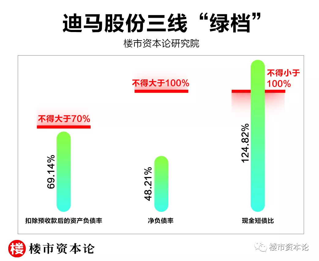 这也意味着,迪马股份“三道红线”财务指标全部在达标范围内,成为最安全的“绿档”企业。
