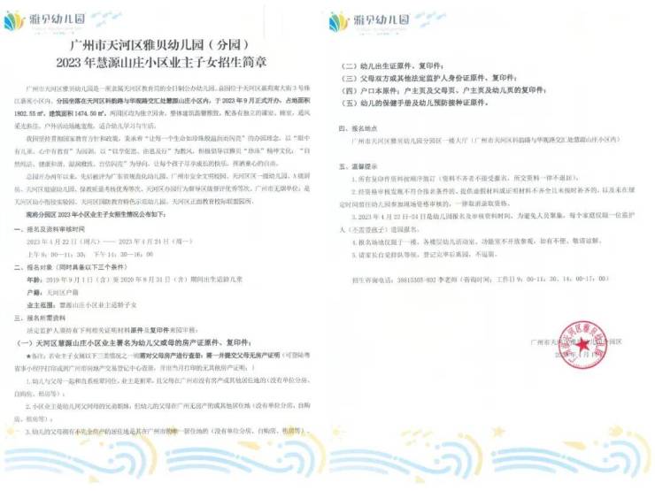 且2023年首批招生对象仅为慧源山庄小区业主适龄子女。未来,业主不出小区即可接送幼儿上下学。