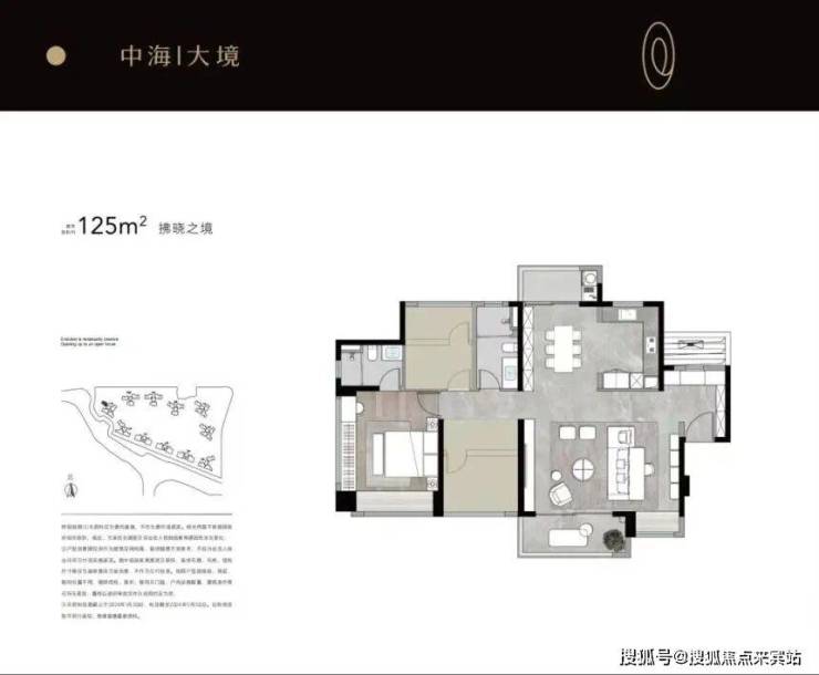 其中,125㎡三房两卫采用南北对流设计,客餐厅一体化连接 6 米景观阳台